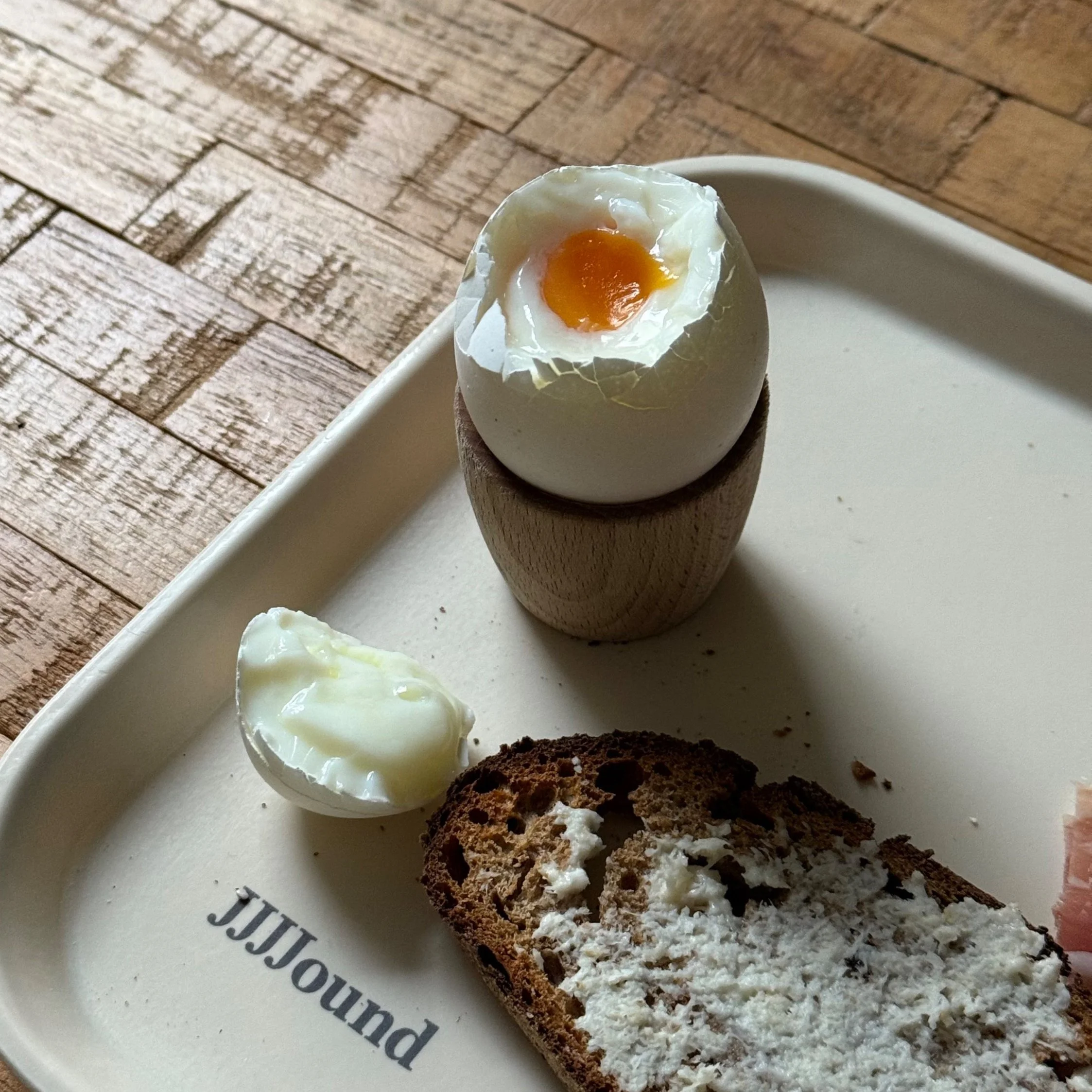 Probably just as simple as the fried egg, but here you really need to pay attention to the yolk's consistency if you don’t want to end up with a dry throat like after a desert hike. Place the egg in a small pot of water, making sure it floats. Heat the water until it begins to boil, then remove it from the heat. After 5-7 minutes, let the egg cool in cold water for 2-3 minutes. All you really need is salt. I personally prefer Fleur de Sel. Hopefully, you have an egg cup – not just for practicality but maybe to understand my love for a boiled egg.