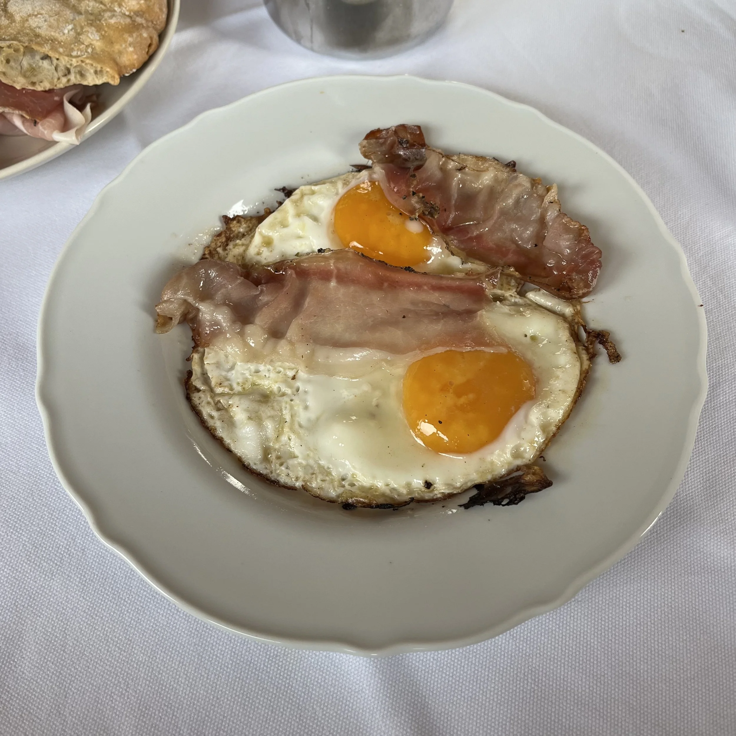 Ok, this is a serious egg dish. Right after reaching the Jaufen Pass, there’s a Guesthouse at nearly 2,000 meters of altitude. It was seven in the morning when the sun first touched the peaks of the Jaufental valley, shining into the cozy, small dining room. An older, sweet lady entered the room and approached us with a faint smile. The fact that she asked how many fried eggs we wanted, instead of asking if we wanted any at all, made her even more endearing. We went with two, because one just isn’t enough. Then she asked if we wanted them with south tyrollean ham. You can guess the rest.