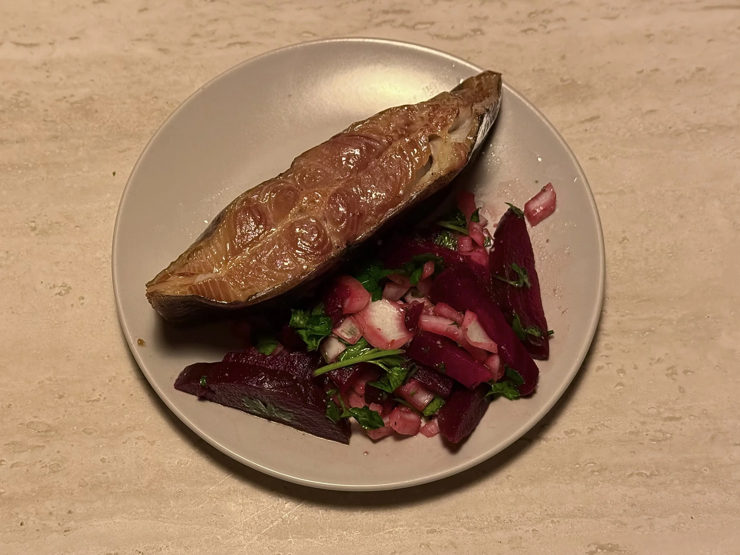 To complement it, we wanted something fresh and simple. We went for a quick and easy beetroot salad with white onions, a generous drizzle of olive oil, a splash of balsamic vinegar, fresh parsley, and a pinch of salt and pepper. The earthy sweetness of the beets paired beautifully with the mild smokiness of the halibut – a simple yet incredibly satisfying dish.