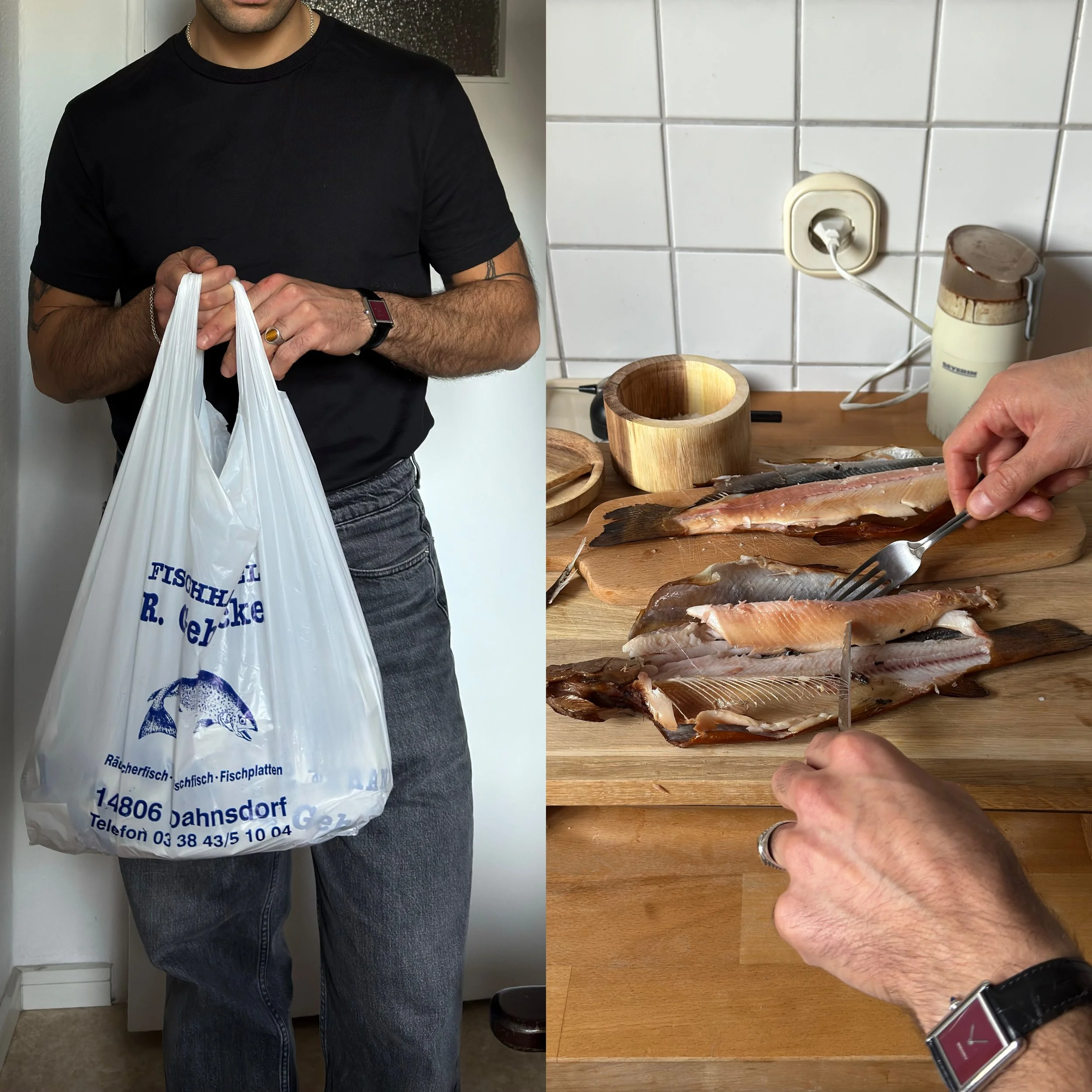You probably already know that we love and appreciate simple and honest food. Wittenbergplatz has a variety of small, independent businesses that source their products with integrity and hard work. Fresh and local vegetables, fruit, butter, eggs, meat, fish, and plenty of other small delights like honey from the Uckermark. Here’s our selection of Thomas’ smoked fish and how we love to eat it.