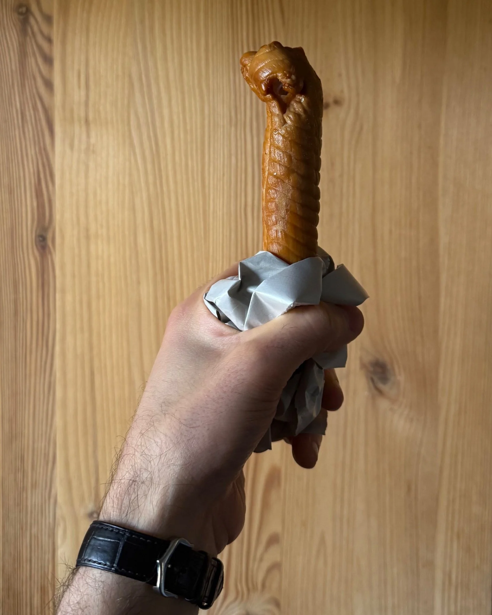 We don’t overcomplicate things – just unwrap and eat. But one thing you should know: “Schillerlocken” are often mistaken for “Goldlocken”. Schillerlocken are cut from the belly flaps of the dogfish, which is now on the endangered species list. A more sustainable alternative is the “Goldlocke” that comes from the belly flap of the tilapia, farmed in Indonesia. We say, the in German calling “Schillerlocke” is definitely the more delicious choice.