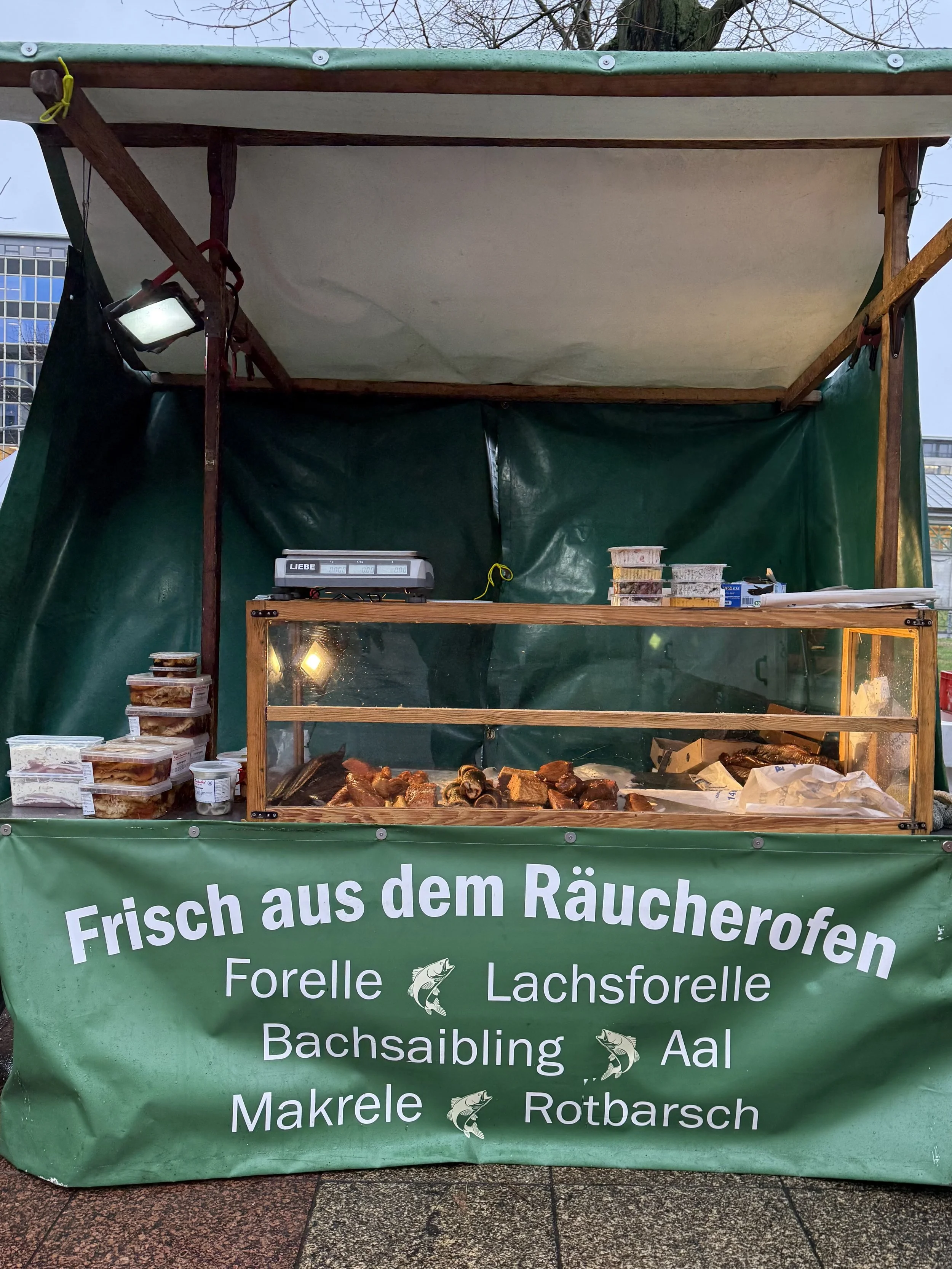 Why do we occasionally go for halibut? There’s a little story behind it. Of course, Wittenbergplatz has plenty of other delicious foods to offer. Back in the day, we used to have “Erbsensuppe mit Mettenden” (pea soup with smoked sausage) and a piece of bread for lunch – simple but good! We always knew someone at the market was smoking fish – you couldn’t miss the smell. One day, one of us got in line at Thomas stand and met him for the first time. He had so much to offer that choosing was difficult. So, Thomas simply packed a piece of halibut with a friendly “see you next time”. From that moment on, there was no turning back. Halibut is incredibly tender and literally falls apart. Plus, like all smoked fish, it’s super healthy – rich in omega-3 fatty acids and protein.